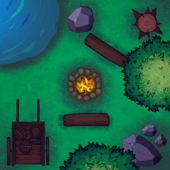 I never find the exact map assets I'm looking for, so I took fate into my own hands and created some bare-bones basic camp icons to use when I run online games. I hope you use them in your own games!