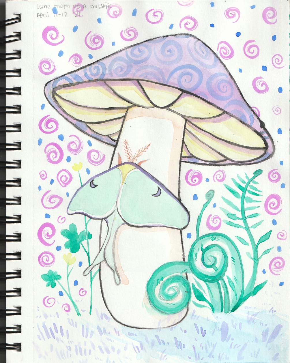 3 pages out of my sketchbook featuring colorful mushrooms in watercolor