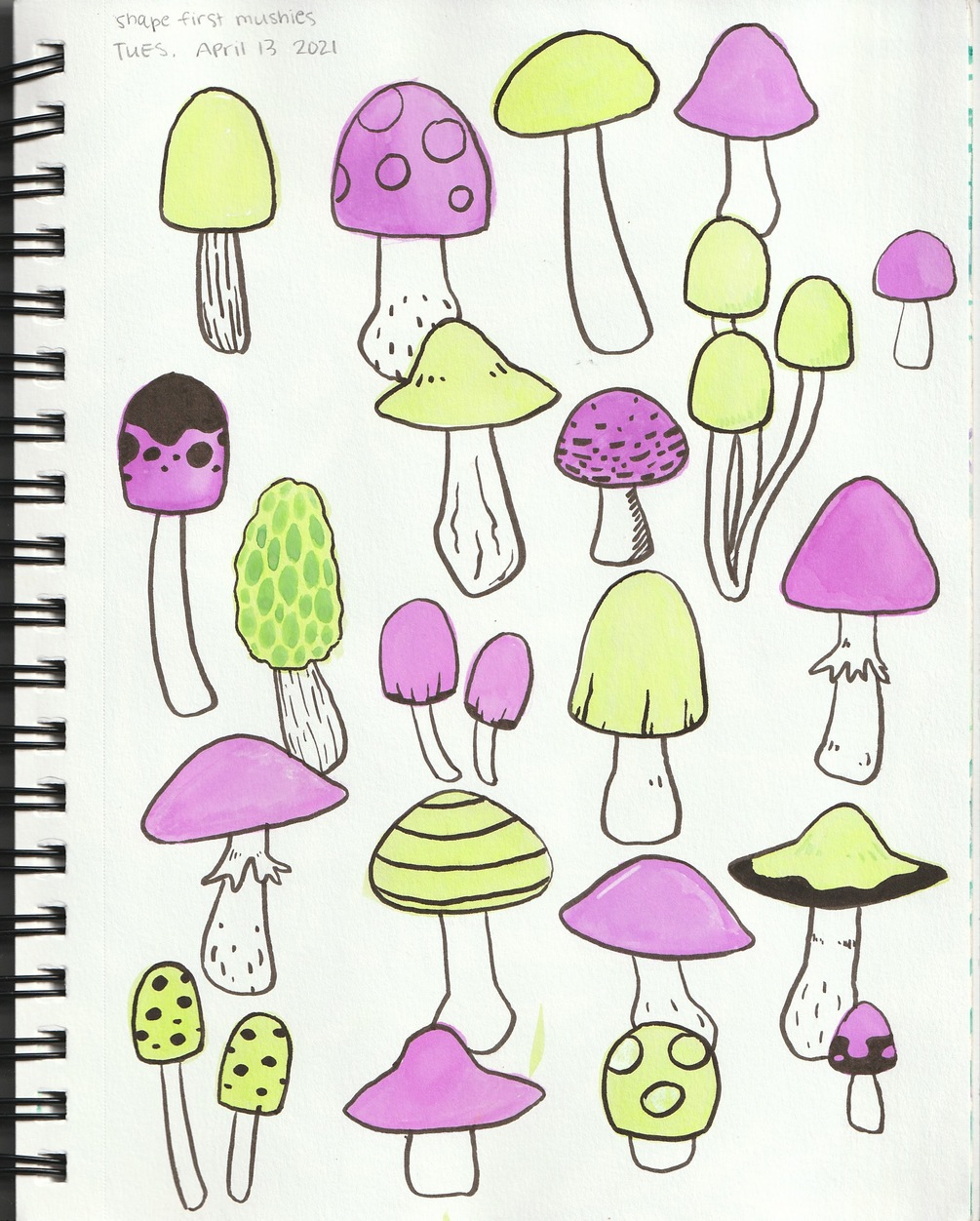 3 pages out of my sketchbook featuring colorful mushrooms in watercolor