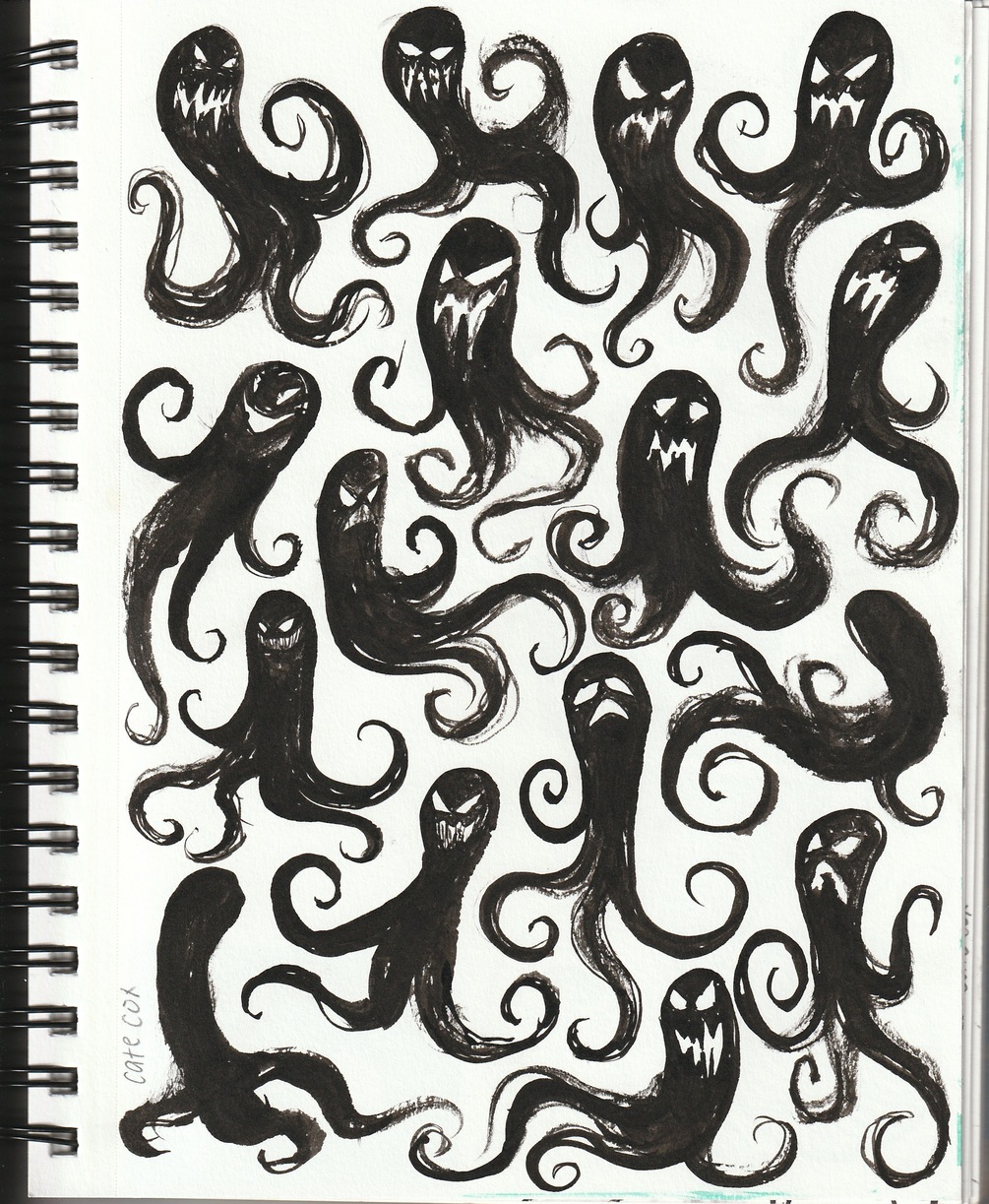inky, spooky sketchbook pages done this October